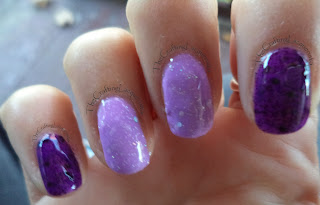 My index and pinkie fingers showcase California Girlz. The specks of black glitter make the purple pop so much and I really like how easy they are to push around and clump together!
