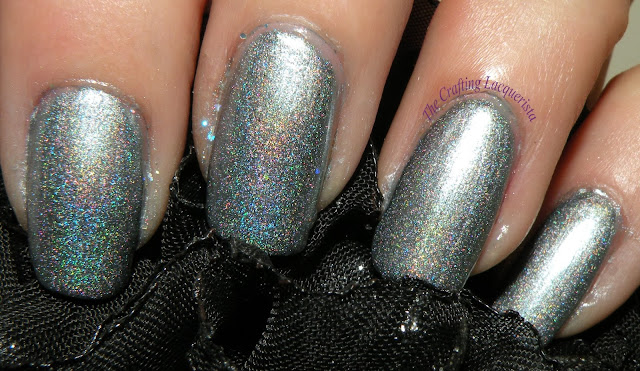 Now let me show you Black Ice which is described on the website as "an icy charcoal metallic holo that pulls slightly blue in certain lights." I did two coats of black ice with one coat of Seche Vite on top. I tried my best to get the absolutely amazing holo effect to show but photos just don't do this color justice!