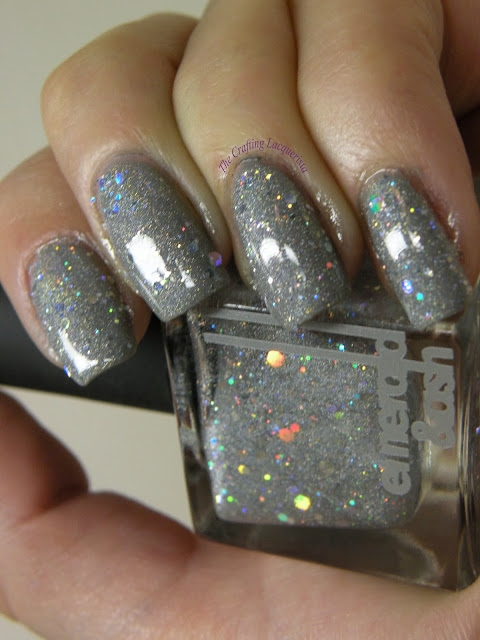 Now here is Sweater Weather with Frosted as a top coat! Frosted could very well be a stand alone polish but the maker describes it as such - "Frosted is packed full of all things holo! Tons of holo glitter and a touch of holo pigment make this a stunning top coat!" My swatches below show only one coat of Frosted over sweater Weather with a single coat of Seche Vite. The last picture is purposely out of focus to highlight the amount of sparkle this top coat has!