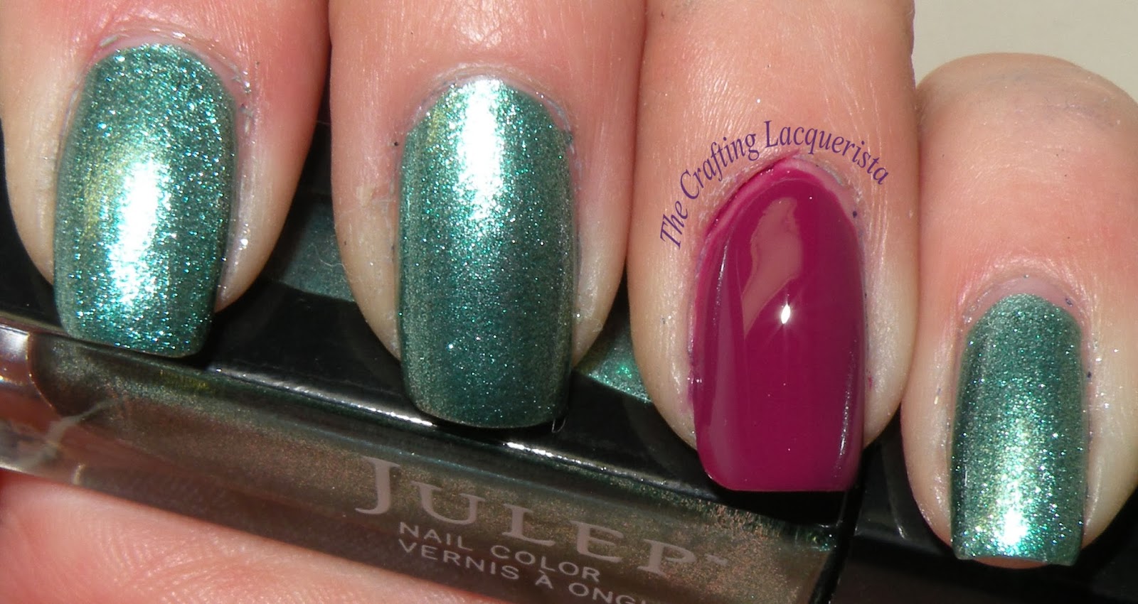 So today to go along with my Julep rant I present to you Ceila and Evelyn. Evelyn is a beautiful plum red cream polish and Evelyn is shimmery metallic blueish green. I decided to use Evelyn as my main polish color and Ceila as an accent to save myself some time. it is very late and I don't want to prolong this post too very much. My swatches show two coats of each with a seche topcoat!