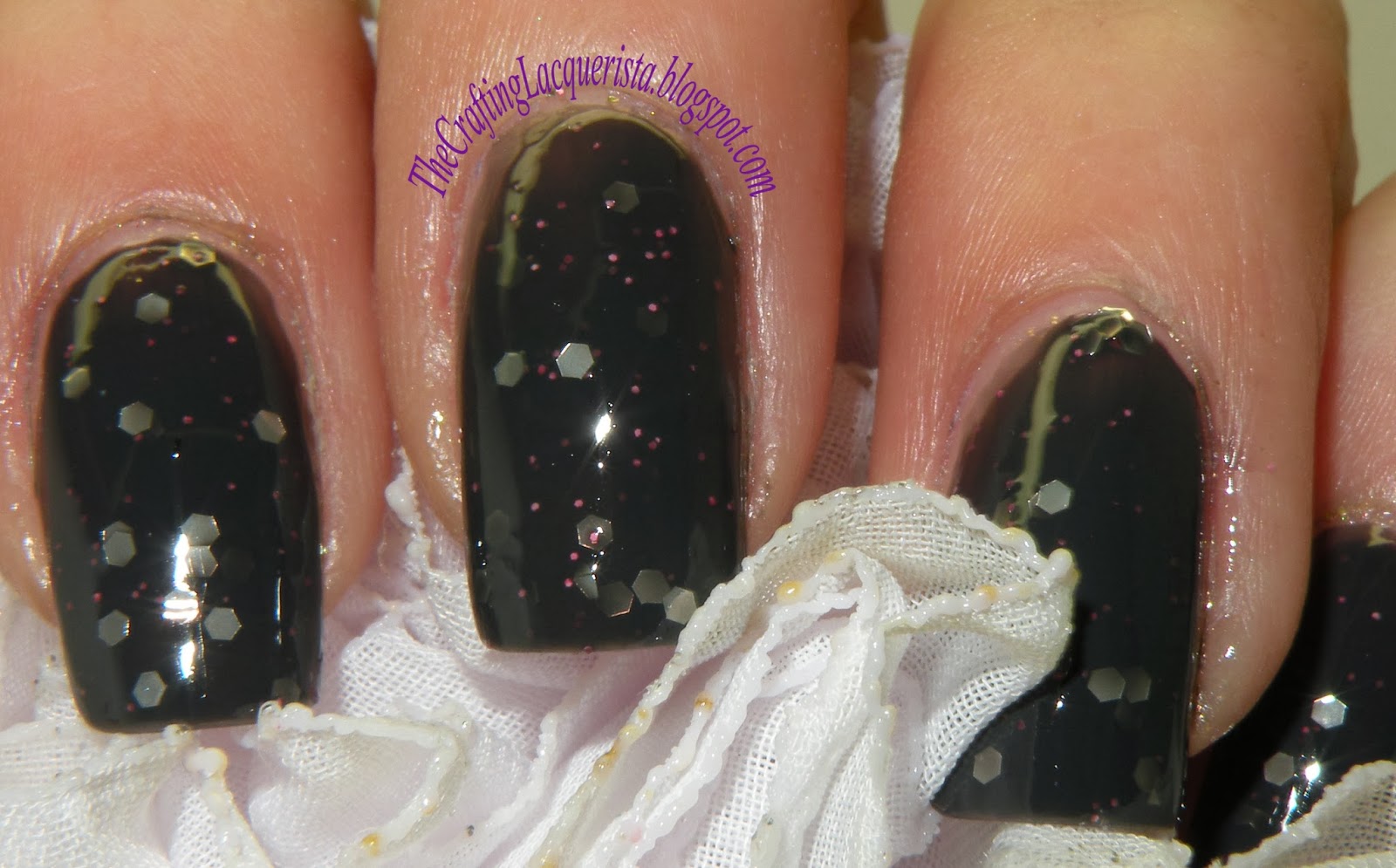 Now you see why I am so in love with this polish! I honestly think this is by far my favorite grey of all time. The hex glitters were so happy to be on my fingers and the way they came out with the brush was a dream. I am also a huge fan of jelly glitter polishes for the depth they give. This polish gets an A++ in my book all the way! There was no shrinkage with my Seche topcoat which always seems to happen with jellies and I. The one trick I can lend to you is when it comes to jelly polishes thin coats are easiest to work with. My swatches above show three thin coats that dried completely between each one.