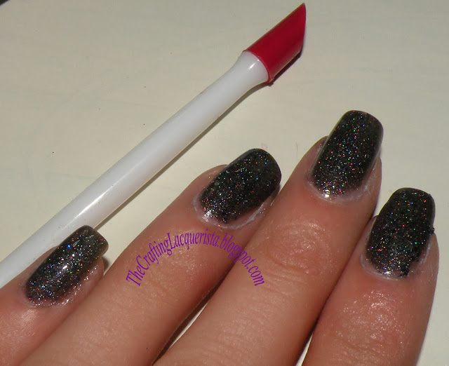 Now I wanted to show you a glitter polish with this trick because I have to prove that it works right? So I decided on Gothic Gala Lacquers Welcome to the Ball! I know I have reviewed a lot of Gothic Gala Lacquers lately but honestly I am just in love with this polish! There are so many great shades and glitter combinations to choose from in her shop and I feel that her combinations are truly unique. I love other indie brands as well don't get me wrong but when I see makers copying other makers design and vibe it kind of irks me. I want to feel like the nail polish I am buying is something that the maker put time and thought and feeling behind. Not just oh hey circle glitters in dark bases are a thing now so let's all make them.