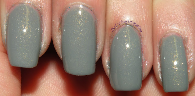 Okay onto the polishes! First up is Sweater Weather which is describes as a "pure grey, slightly sheer, crelly polish that is filled with yellow micro flakes." This description is dead on! The polish feels delicate and cozy all at the same time. The pictures show three coats of Sweater Weather with one coat of Seche Vite.