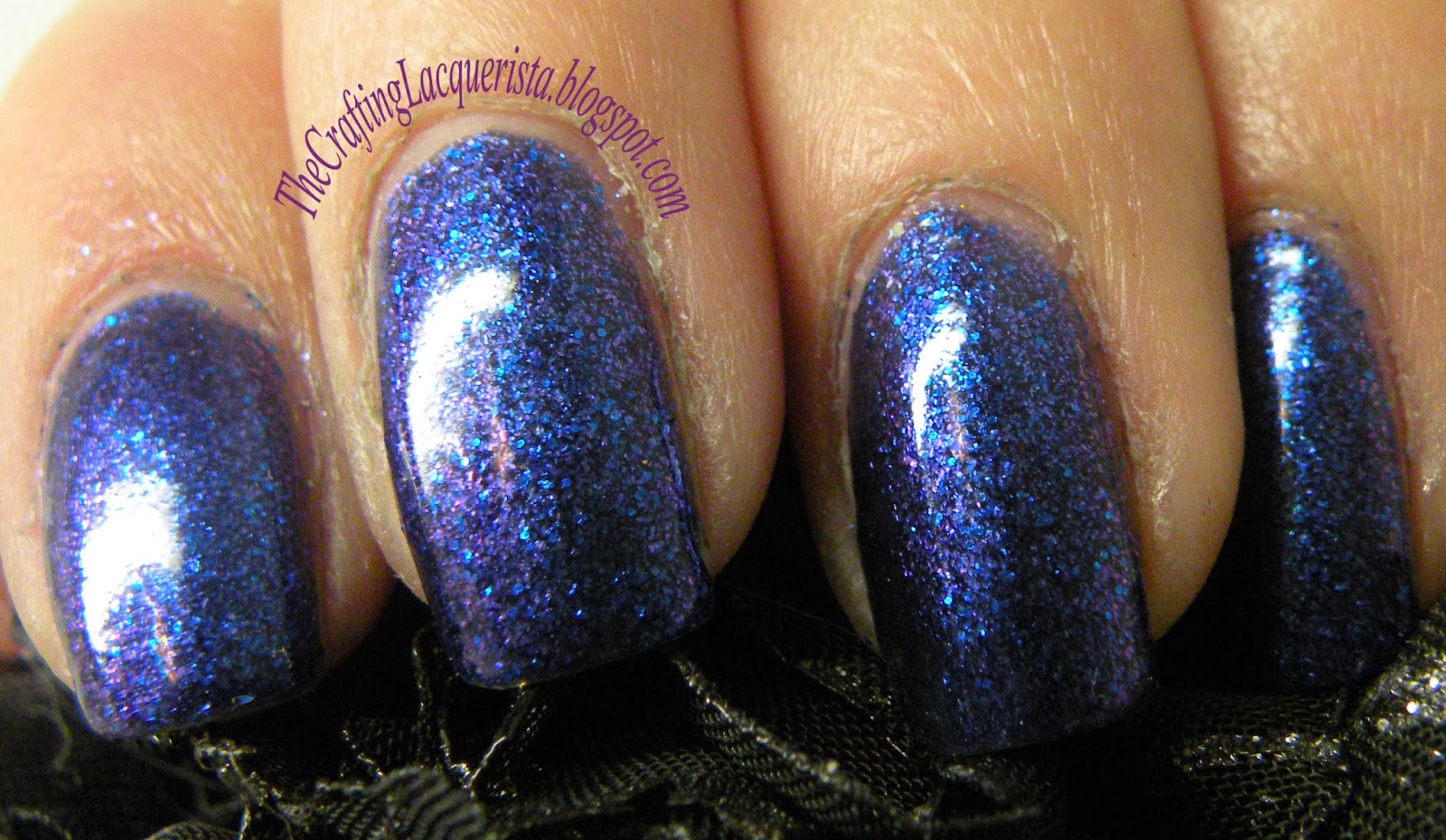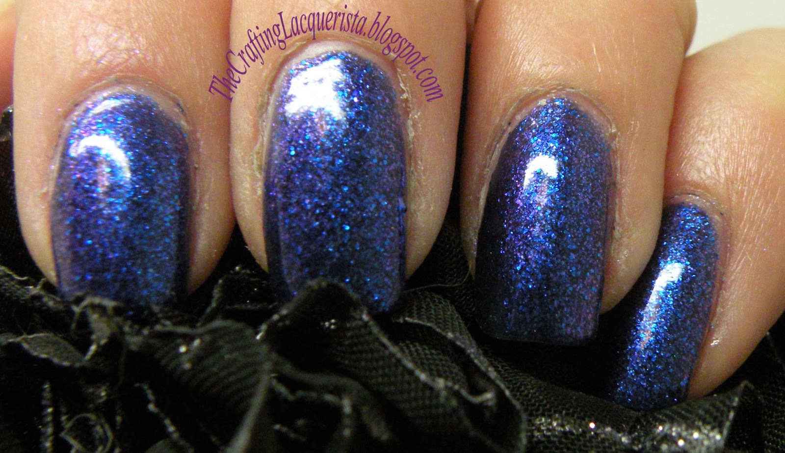 purple, and tons of blue fine glitter." I am absolutely in love with this polish! I think that it has everything I could ever want or need in a dark blue! I am showing three coats here!